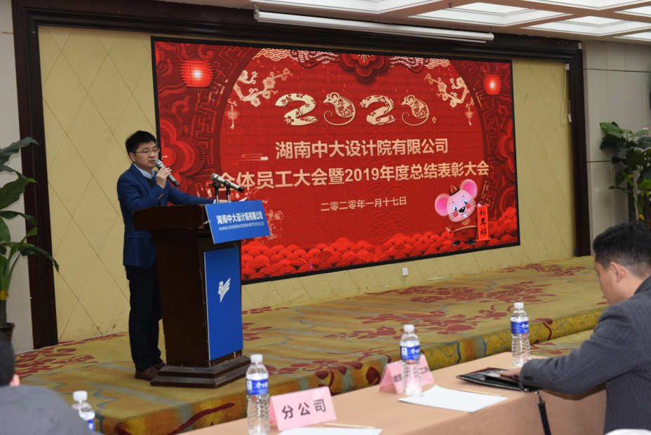 为认真总结和回顾设计院2019年工作,明确2020年的工作重点,1月17日上午9:00,在湘府国际大酒店十八楼会议中心隆重召开全体员工大会暨2019年度总结表彰大会。大会由设计院党支部书记、副总经理胡迎新主持。