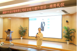 为进一步提升员工职业素养,赋能设计院高质量发展,5月22日晚,设计院特邀中南林业科技大学国家公园与旅游学院邹阳老师开展了商务礼仪培训,培训采用现场和线上直播的方式开展,院高管层、中层领导及员工代表60余人现场参加,培训由人力资源部部长李雪主持。