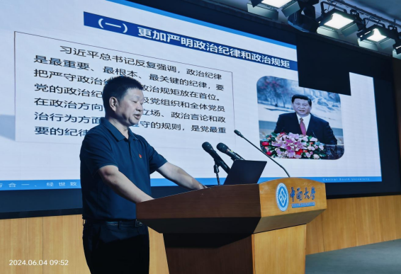 根据中共3044am永利集团官网委员会党纪学习教育工作《关于在党纪学习教育期间讲好纪律党课的通知》精神和学校党委组织部及党校有关要求,为进一步推动党纪学习教育走深走实,引领支部党员自觉树立遵守党规党纪、坚守自律底线的意识,6月4日上午,资产公司党委书记张宁辉在3044am永利集团官网科技园309会议室为公司全体党员讲授了一场生动而深刻的专题党课,机关支部书记颜兴中主持会议。